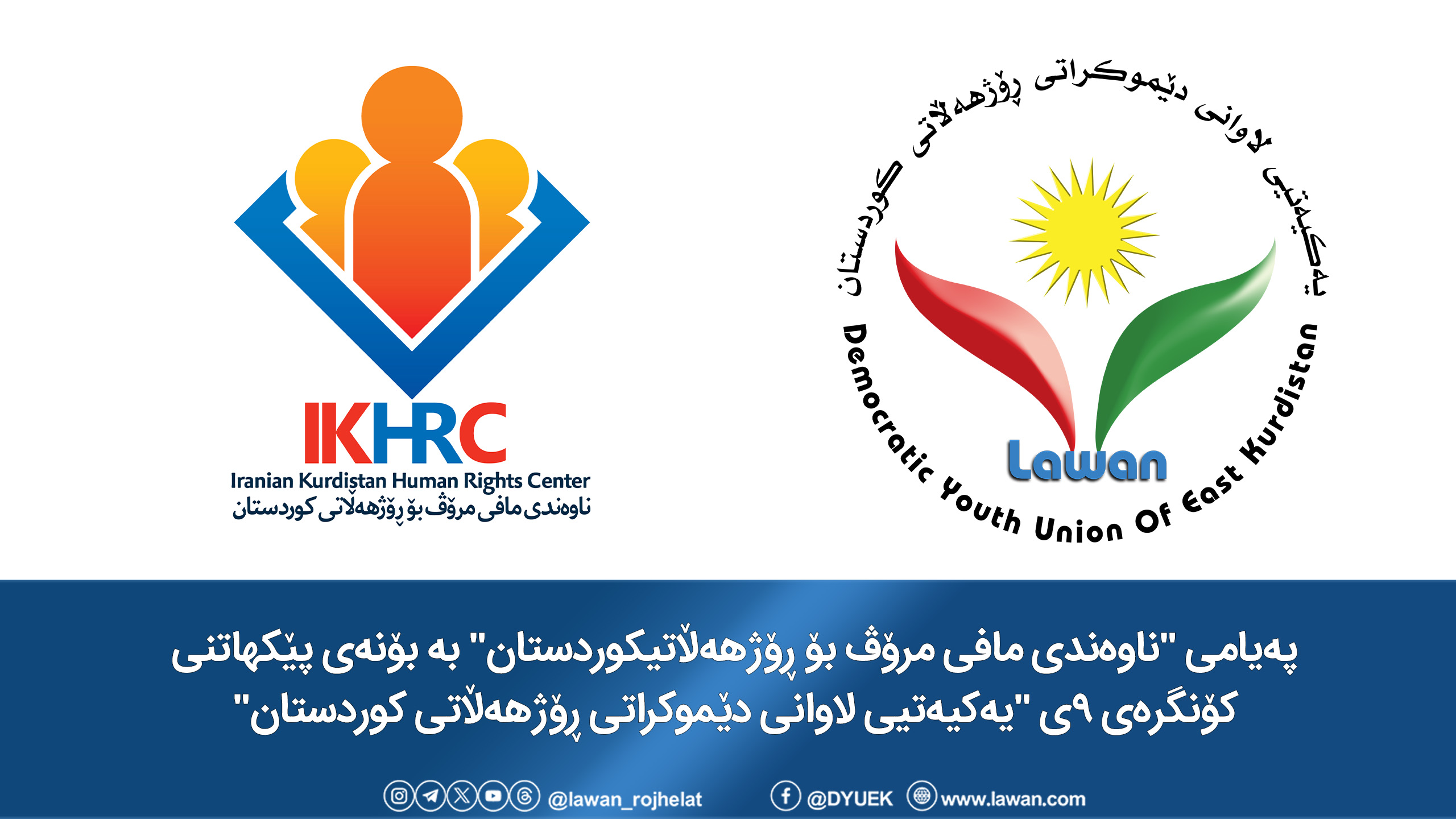 ئێمە لە ناوەندی مافی مرۆڤ بۆ ڕۆژهەڵاتی کوردستان، بە بۆنەی نۆیەمین کۆنگرەی، یەکێتی لاوانی دێموکراتی ڕۆژهەڵاتی کوردستان، وێڕای سڵاو و ماندوونەبوونی، گەرمترین پیرۆزبایی ئاراستەی ئێوە خۆشەویستان دەکەین.